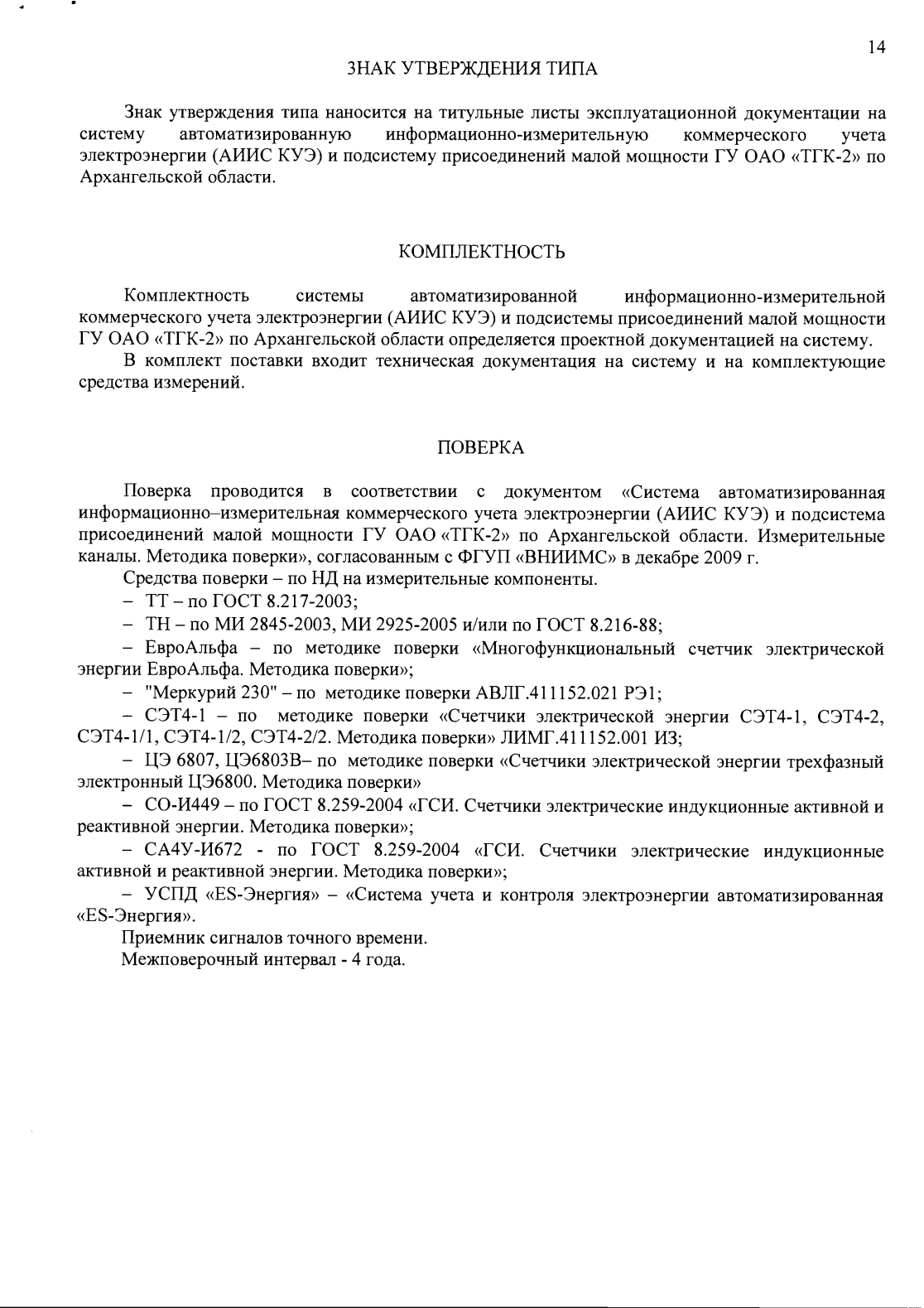 Система автоматизированная информационно-измерительная коммерческого учета электроэнергии (АИИС КУЭ) и подсистема присоединений малой мощности ГУ ОАО "ТГК-2" по Архангельской области Нет данных, ГРСИ 35229-07
