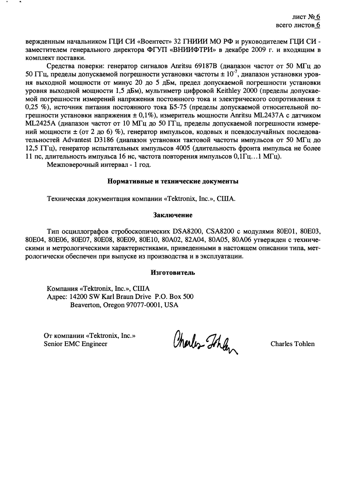 Компания "Tektronix, Inc.", США