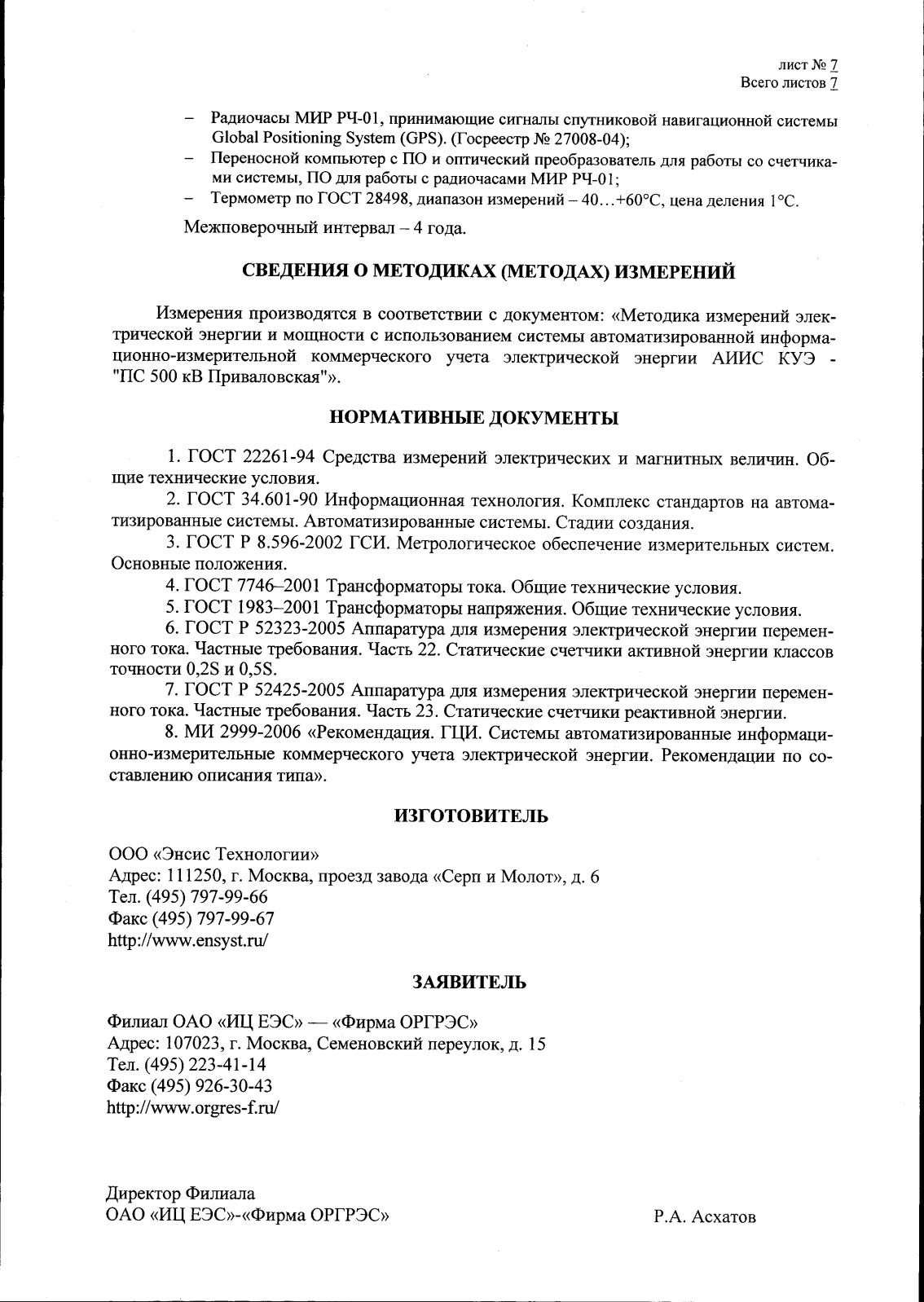 Система автоматизированная информационно-измерительная коммерческого учета электрической энергии АИИС КУЭ - "ПС 500 кВ Приваловская" Нет данных, ГРСИ 46485-10