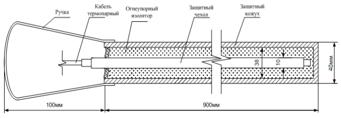 вокруг термоэлектродов заполнено уплотненной мелкодисперсной минеральной изоляцией.