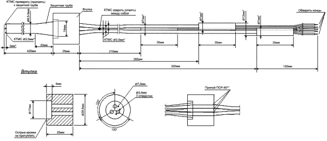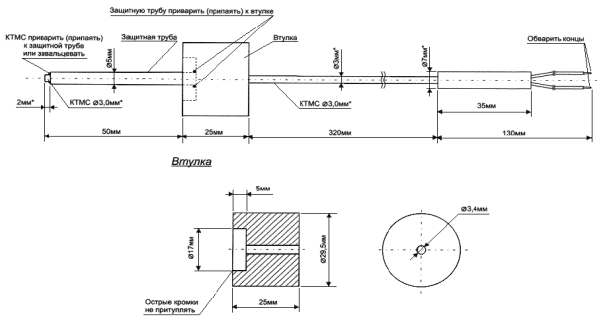 термопары представляют собой гибкую металлическую трубку с размещенными внутри нее одной