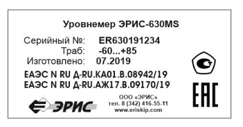 наносят на информационную табличку на корпусе уровнемера ЭРИС-630MS методом