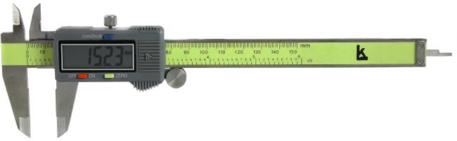 на ЖК экране цифрового отсчетного устройства, расположенного на рамке штангенциркуля.